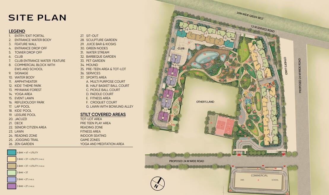Signature Sarvam offers modern amenities like a Clubhouse, Gym, Children’s Play Area, and Landscaped Gardens.
